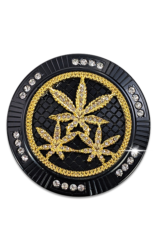 - ★ Zinkgehäuse in Schwarz mit goldfarbenem Hanfblatt