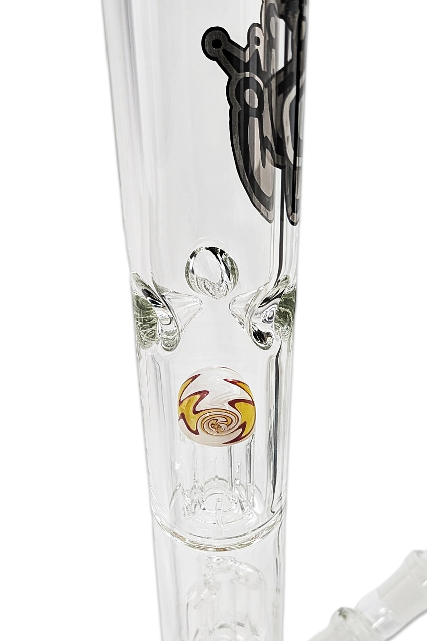 Die Bustamit Uranus ist eine imposante Glasbong aus hochwertigem Borosilikatglas mit einer Höhe von 55 cm und einer beeindruckenden Wandstärke von 7 mm. Sie vereint elegantes Design mit erstklassiger Funktionalität und Stabilität.