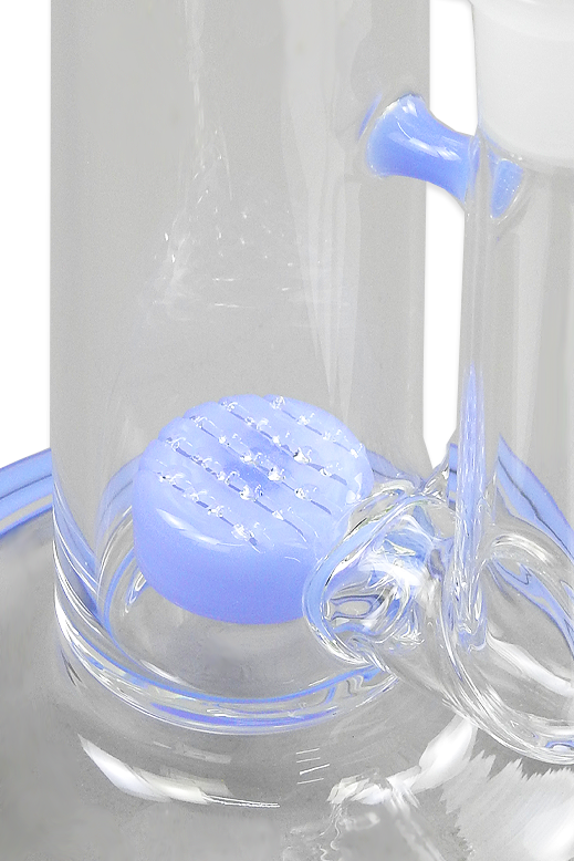 Optisch setzt die Bong klare Akzente durch durchgefärbtes Mundstück, einen durchgefärbten Perkolator sowie einen durchgefärbten Rand am Fuß.