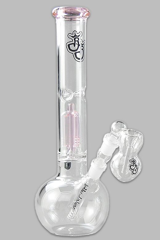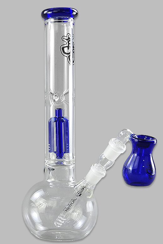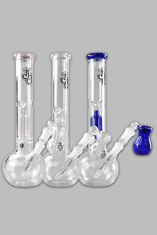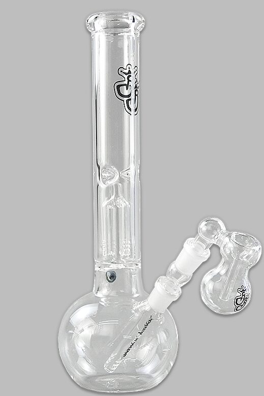 Die Bong „Twobelly“ ist eine kompakte Eisbong für angenehm gekühlte Züge. Mit 30cm Höhe, 14,5er Diffusorstecksystem, integriertem Vorkühler und Dreiarmperkolator sorgt sie für gute Kühlung und eine saubere Filtration – ideal für sanftere Züge.