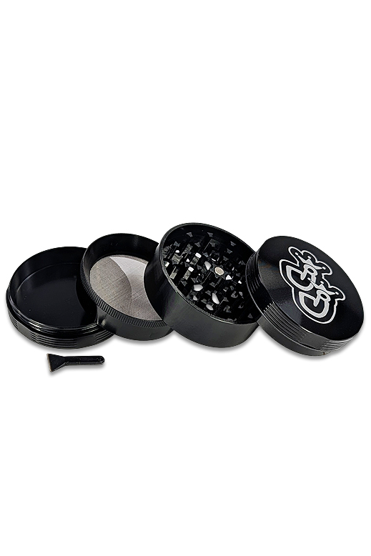 Der Cross Grinder in Schwarz wirkt besonders edel und bietet eine stabile Bauweise mit präziser CNC-Fräsung. Das herausnehmbare Pollinatorsieb wird einfach eingesetzt, ohne Gewinde. 55 scharfe Trapezzähne sorgen für eine saubere Verarbeitung des Materials. Ein passender Schaber gehört zum Set.
