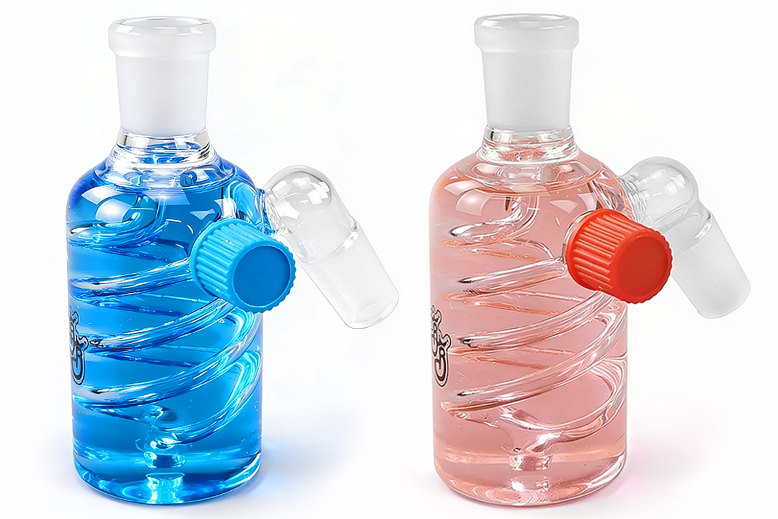 Im Inneren verläuft bei jedem Modell eine senkrechte Kühlspirale, die den Gelcoolern ihre markante Optik verleiht. Durch das Format mit 2 x 18,8mm Anschluss lassen sich die verschiedenen Farben passend in entsprechende Bongs integrieren. So bekommst du einen Vorkühler, der Funktion und auffälliges Design sauber miteinander verbindet.