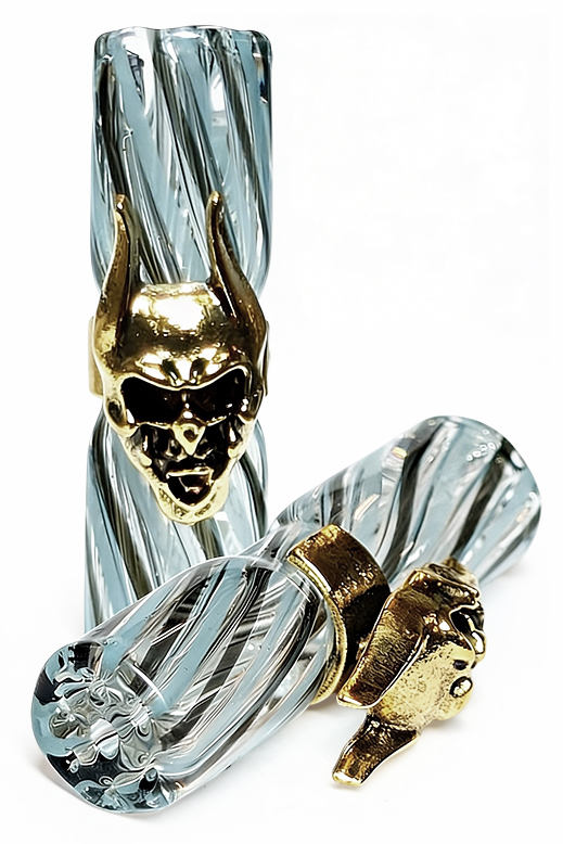 Dieser Glastip aus Glas kombiniert ein Ø12mm Format mit 4,3cm Länge und einem 7-Loch-System für gleichmäßigen Luftzug. Optisches Highlight: Der Messing Totenkopf sitzt als Detail am Tip.