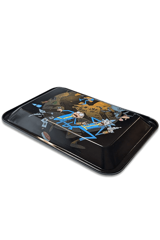 Dieser beidseitig bedruckte Rolling Tray aus Metall kombiniert Funktionalität mit einem lebhaften und dynamischen Design, das Fans von futuristischen und actiongeladenen Szenen begeistert. Mit den Maßen 18cm x 12,5cm bietet dieser Tray genügend Platz für all deine Utensilien. Das zentrale Motiv zeigt eine spannende Szene, in der eine Gruppe von Charakteren in futuristischen Anzügen einem chaotischen Abenteuer entgegensieht. Die Szenerie ist umgeben von actionreichen Details, darunter technische Geräte, Werkzeuge und seltsame Kreaturen, die dem Motiv eine intensive und aufregende Atmosphäre verleihen.