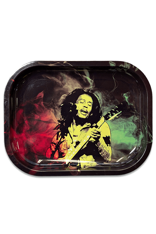 Dieses klassische Rolling Tray aus stabilem Metall bringt Reggae-Feeling direkt auf deinen Tisch. Das Motiv „Reggae Vibes“ zeigt einen legendären Musiker im charakteristischen Rasta-Farbschema – umgeben von rauchigen Effekten, die das Design besonders lebendig wirken lassen.