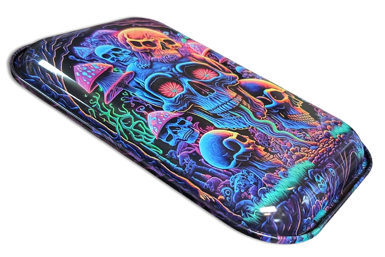 Rolling Tray „Neon Skull Grove“ – 28,5 × 18,8 cm, Metall, beidseitig bedruckt