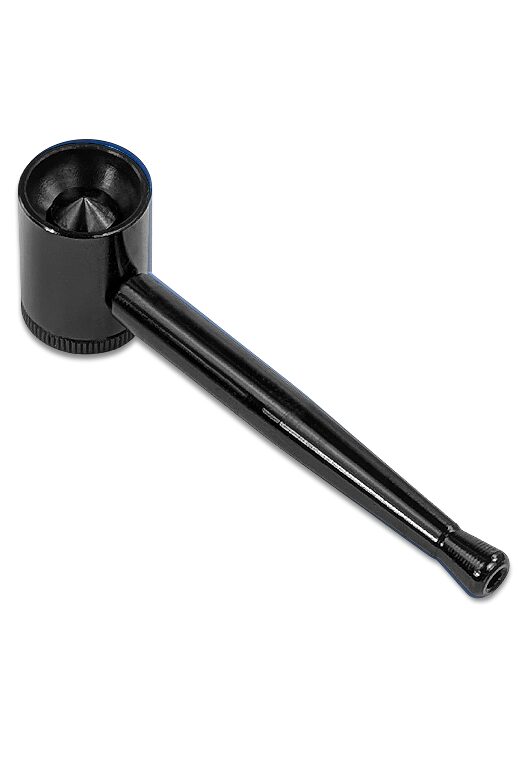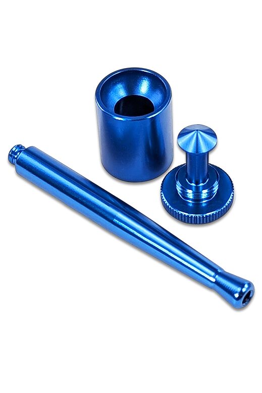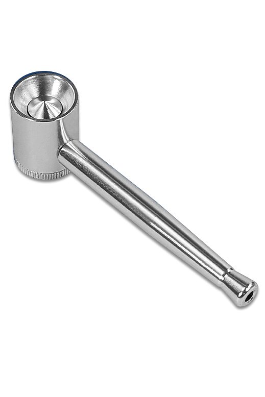 Sieblose Purpfeife aus eloxiertem Aluminium, 9 cm lang. Kopf Ø 12 mm mit integriertem Dorn, komplett zerlegbar und leicht zu reinigen.